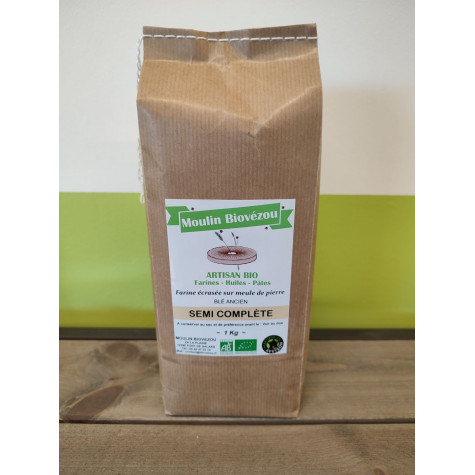 Farine Semi Complète (Bise) de Blé Bio 1 Kg du Moulin Biovezou en Aveyron